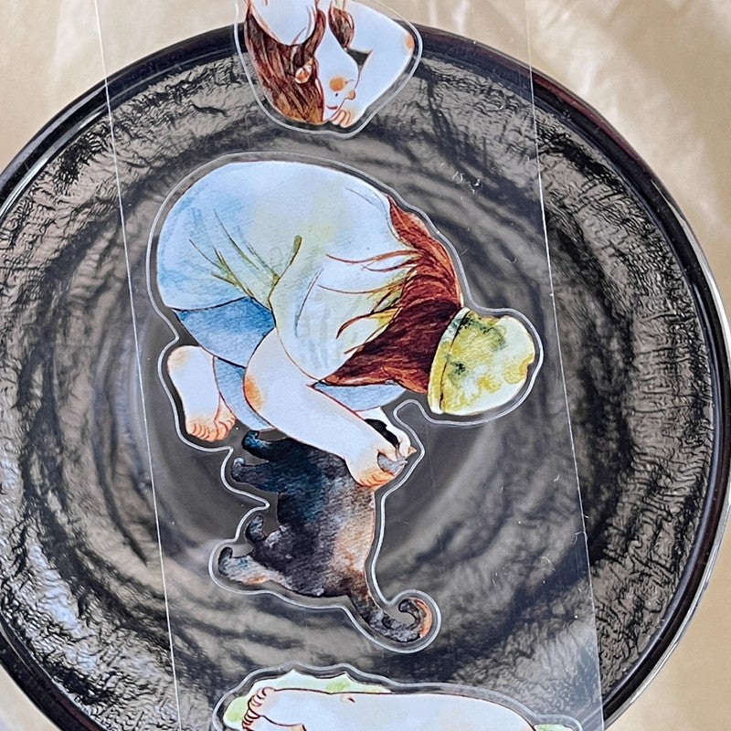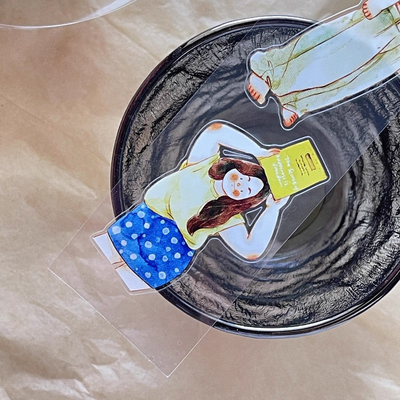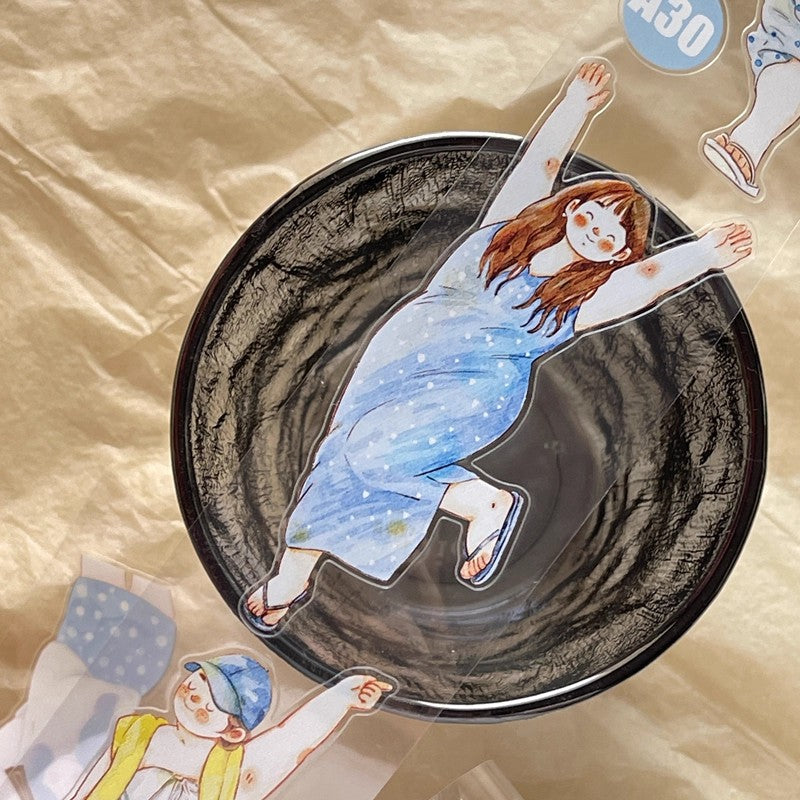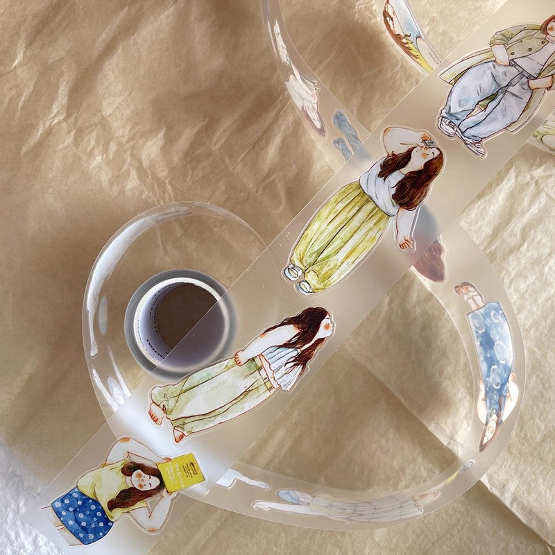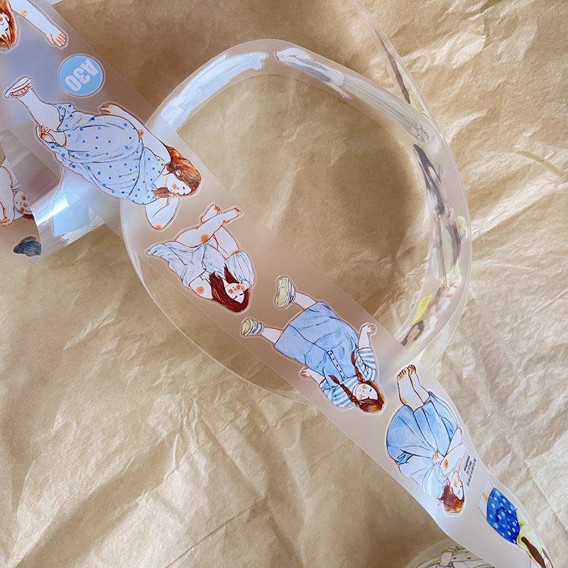 3070 A30 Leisure | Hand-Drawn Character PET & Washi Die-Cut Tape, Journal Decoration Supply