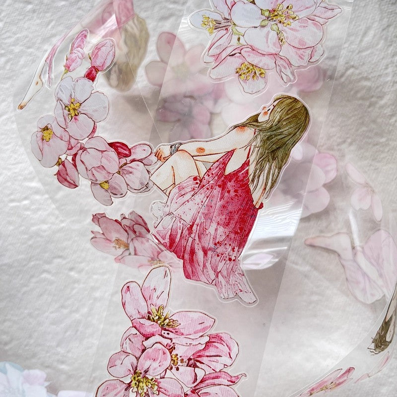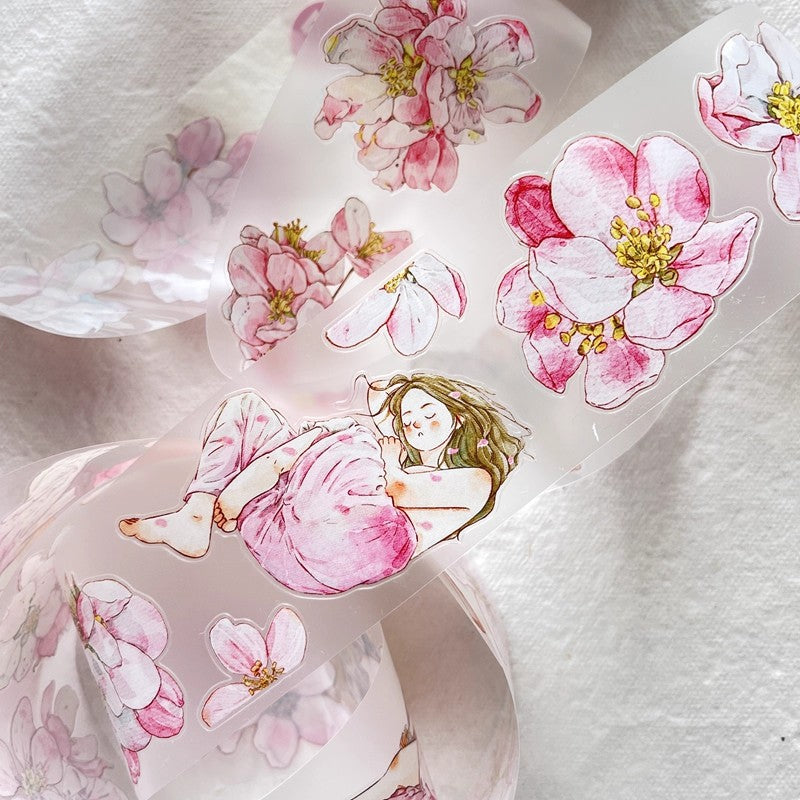 3073 A33 Begonia Slumber | Hand-Drawn PET & Washi Die-Cut Tape, Journal Decoration Supply