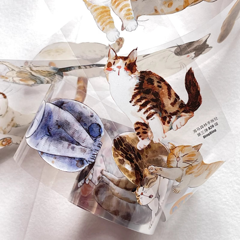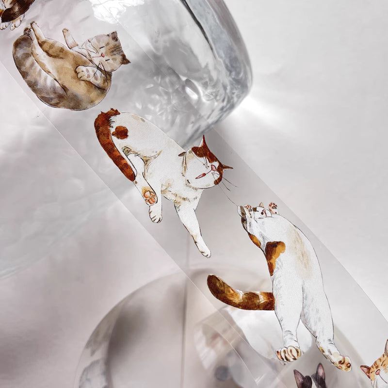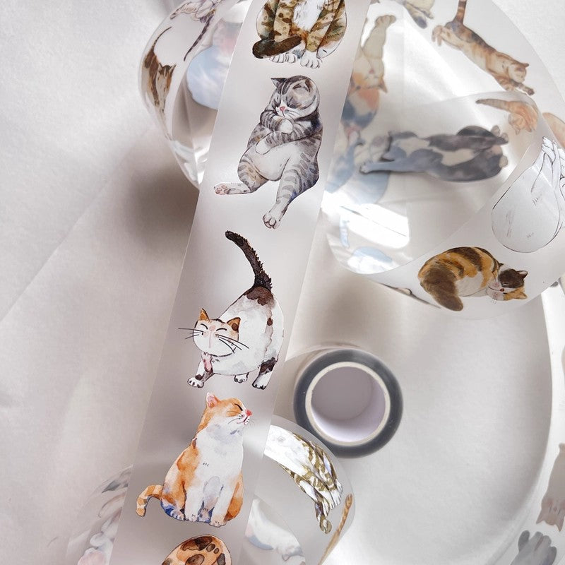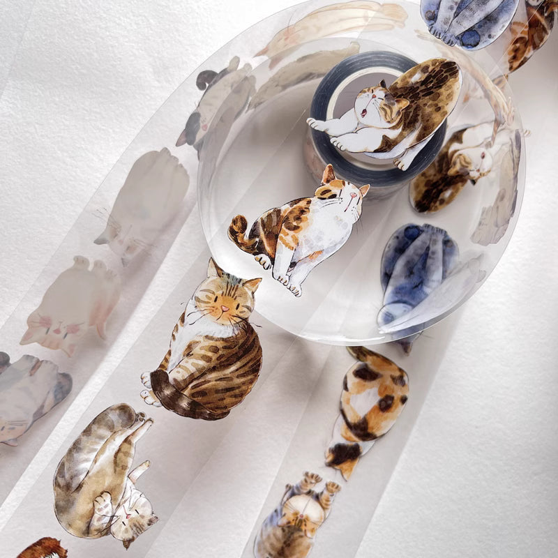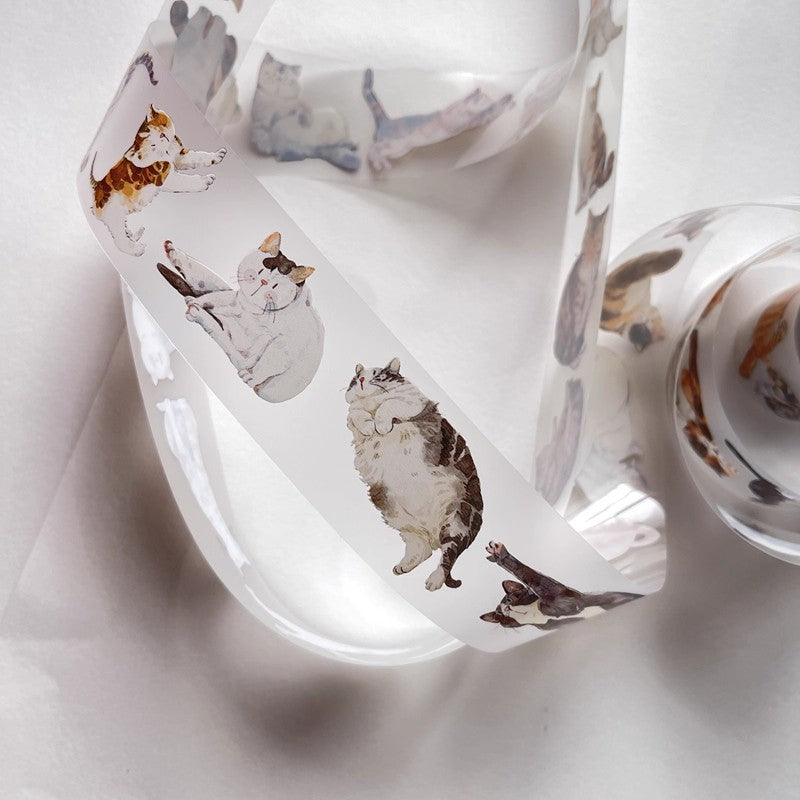 3077 A20 Meow | Original Hand-Drawn Cat Washi Tape / PET / Matte for Journaling