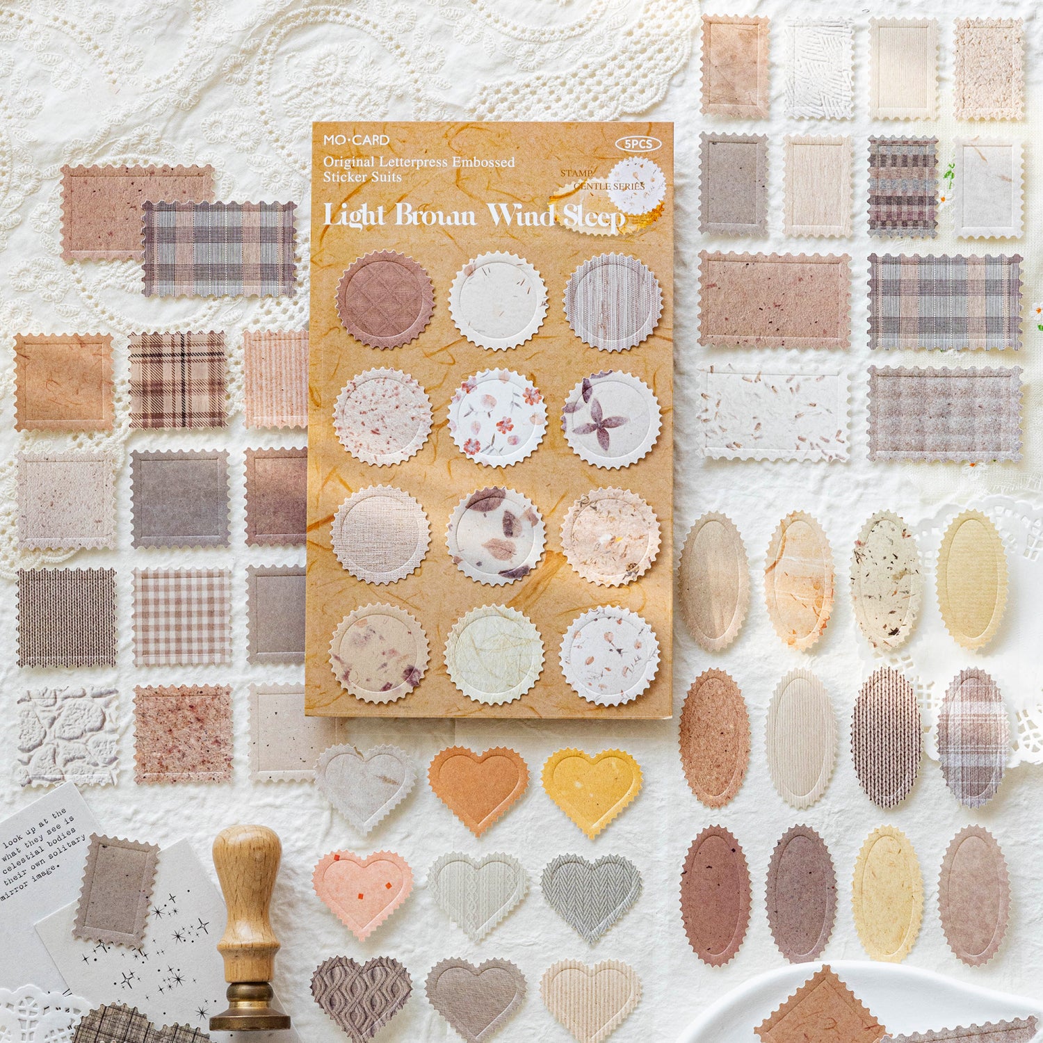 [2602-017] Embossed Kraft Paper Sticker Set 4 Styles