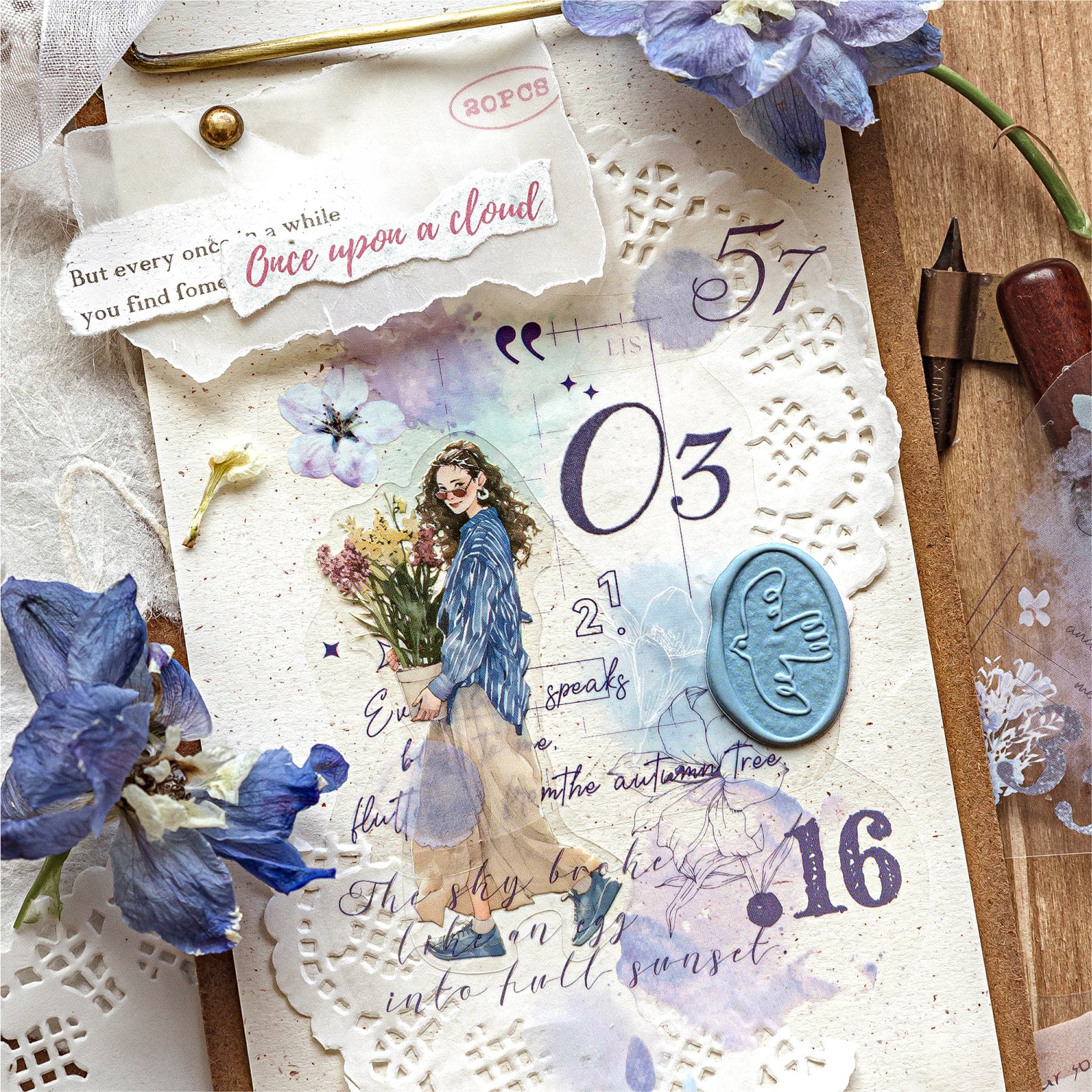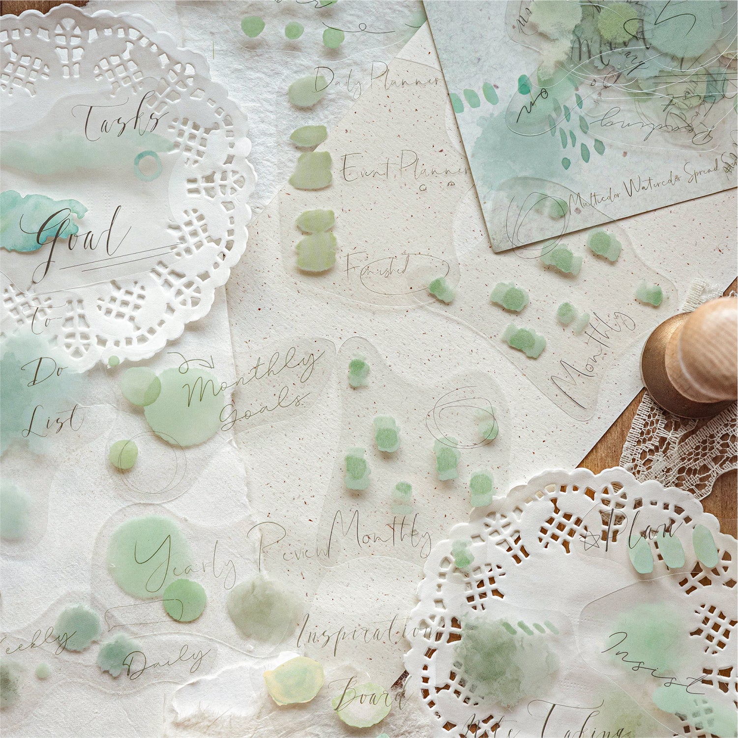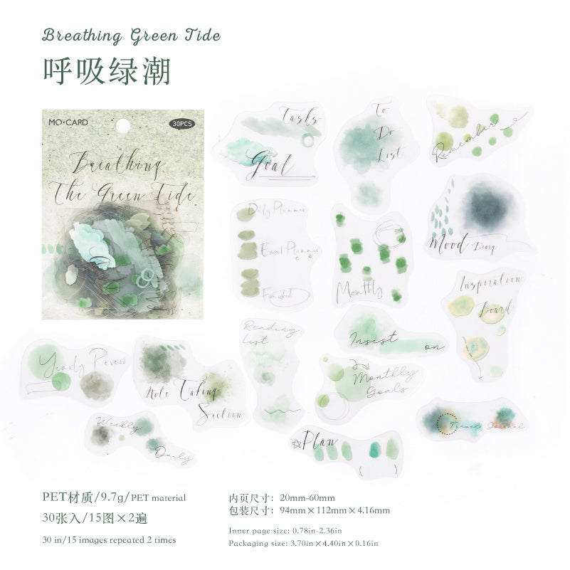 [2602-016] Watercolor PET White Ink Stickers Pack 4 Styles